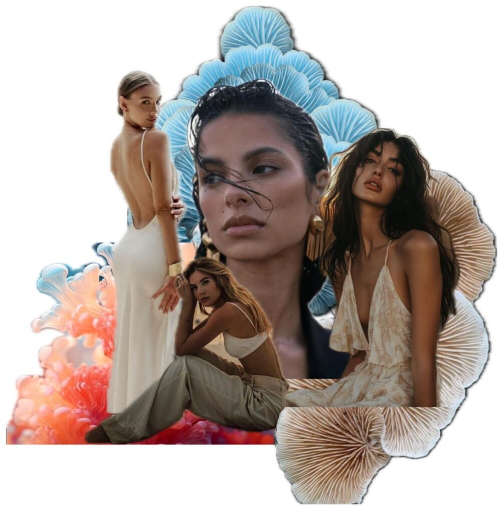 Es una mujer entre los 25 y 35 años , que camina entre la fuerza y la delicadeza. Su espíritu se inspira en la naturaleza, en la fluidez del agua y en la calma de los corales que la envuelven. Busca vestir libertad, movimiento y belleza, llevando consigo prendas que son como un eco de su esencia: suaves, etéreas y llenas de vida.